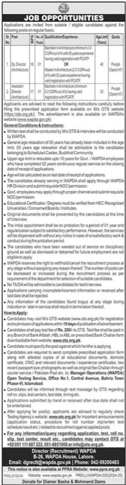 WAPDA Lahore Jobs 2025 for Assistant Director Architecture