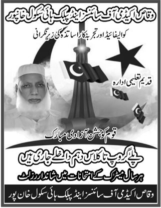 Waqas Academy of Sciences & Public High School Khanpur Admissions 2024
