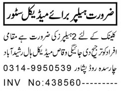 Waqas Medical Hall Peshawar Jobs 2025 for Helper