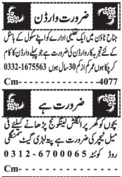 Education is looking for candidates for following posts as per job advertisement published in daily Jang Newspaper of February 3, 2024 for location Quetta, quetta Balochistan Pakistan: