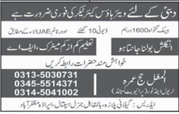 Vacant posts including warehouse care taker are announced in Al Mughal Hajj Umrah Travel and Tours Limited UAE, dubai UAE as per 20 March 2022 advertisement in daily Mahasib Newspaper. Preferred Education is Matric and Intermediate etc.
