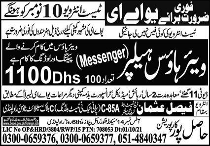 Latest Faisal Usman Overseas Employment Promoters Human Resource Posts UAE 2025