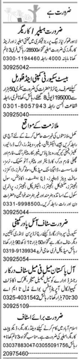 Private Company is looking for candidates for following posts as per job advertisement published in daily Express Newspaper of July 12, 2025 for location Peshawar, lahore Khyber Pakhtunkhwa KPK Pakistan: