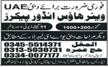 Vacant posts including warehouse indoor packer are announced in Al Mughal Hajj Umrah Travel and Tours Limited UAE, dubai UAE as per 4 March 2022 advertisement in daily Mahasib Newspaper. Intermediate and Matric etc. educational qualification will be preferred.