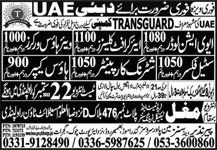 Peer Nazeer & Sons Manpower Services invites applications for job positions advertised in daily Express dated 21 September 2022 for following vacancies in Abu Dhabi, dubai UAE.