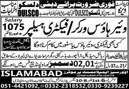Latest Islamabad Overseas Employment Promoter Labor Posts Dubai 2025