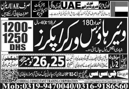 Cordial Consultant Trading Corporation Overseas Employment Promoters invites applications for job positions advertised in daily Express dated 23 November 2025 for following vacancies in Abu Dhabi, abu dhabi UAE.