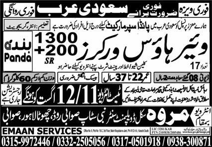 Marwa Skill Development Center Jeddah, dammam Saudi Arabia invites applications from eligible candidates for the post of warehouse worker as per advertisement of August 2, 2024 published in daily Express Newspaper. Candidates with Matric and Intermediate etc. educational background will be preferred.