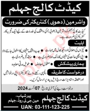 Washerman Contractor Required At Cadet College Jhelum