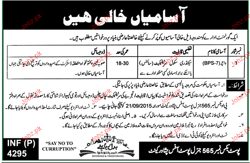 Apply as per details in job advertisement. Login to view further details of how to apply via https://www.jobz.pk online.