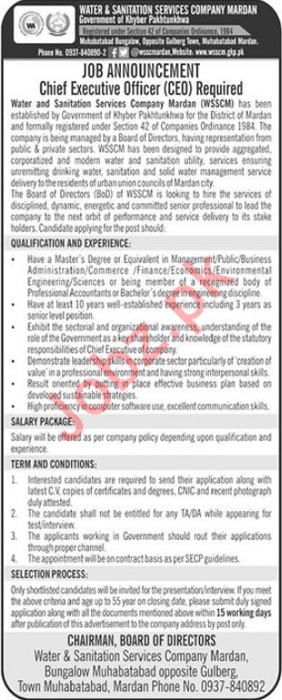 Latest Water And Sanitation Services Company WSSC Executive Posts Mardan 2025