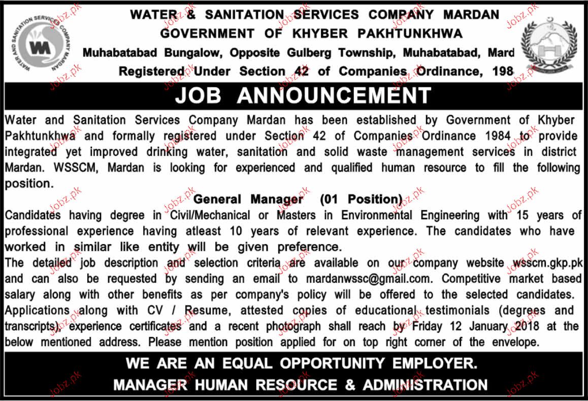 Latest Water And Sanitation Services Company WSSC Management Posts Mardan 2025