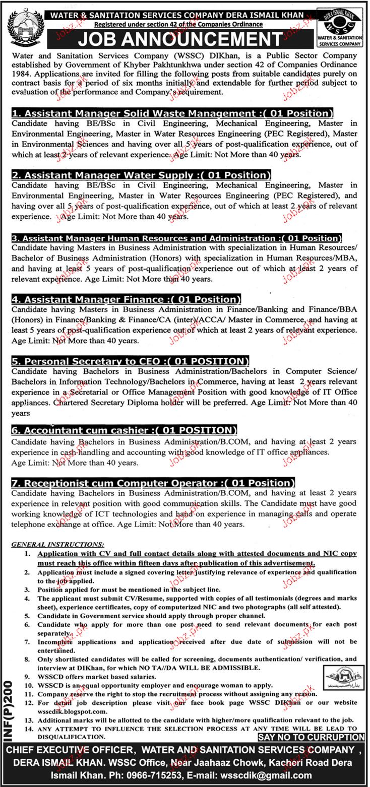 Latest Water And Sanitation Services Company WSSC Management Posts Dera Ismail Khan 2025