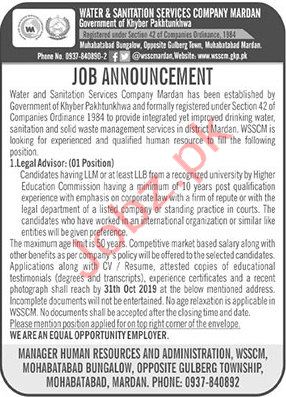 Latest Water And Sanitation Services Company WSSC Legal Posts Mardan 2025