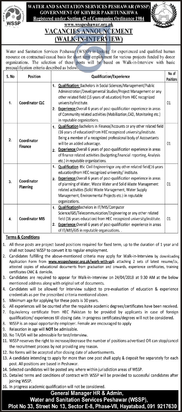 Latest Water And Sanitation Services Company WSSC Admin Clerical Posts Peshawar 2025
