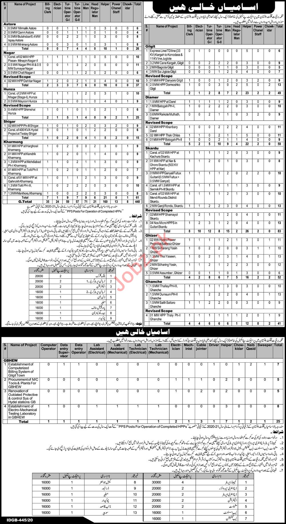 Water & Power Department Gilgit, Water & Power Development Authority WAPDA, Government of the Gilgit Baltistan is looking for the services from energetic candidates for the posts of Billing Clerk, Clerk, Electrician, Turbine Operator, Lineman, Head Regulator Man, Helper, Power Channel Staff, Chowkidar, Computer Operator, Data Entry Operator, Data Entry Supervisor, Electrician, Machinist, Lab Technician, Lab Assistant, Cable Jointer, Driver, Naib Qasid, Sweeper.