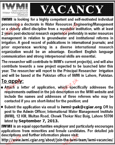 Apply as per details in job advertisement. Login to view further details of how to apply via https://www.jobz.pk online.