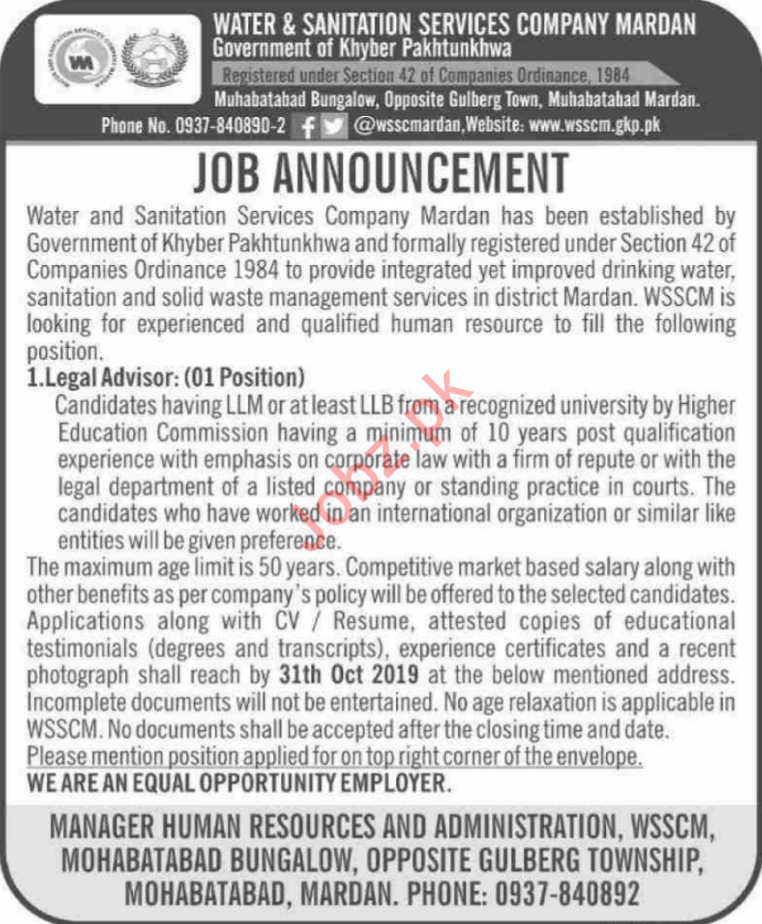 Latest Water And Sanitation Services Company WSSC Legal Posts Mardan 2025