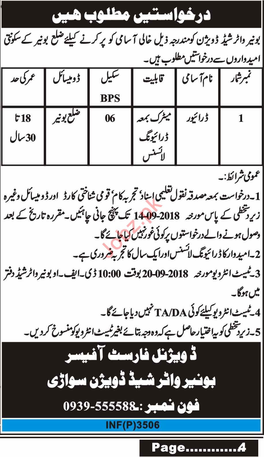 Latest Water Shed Management Division Driving Posts Buner 2025