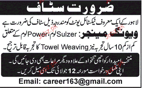 Apply as per details in job advertisement. Login to view further details of how to apply via https://www.jobz.pk online.