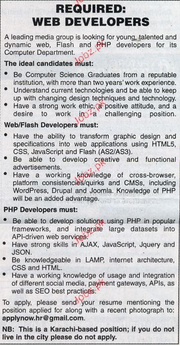 Apply as per details in job advertisement. Login to view further details of how to apply via https://www.jobz.pk online.