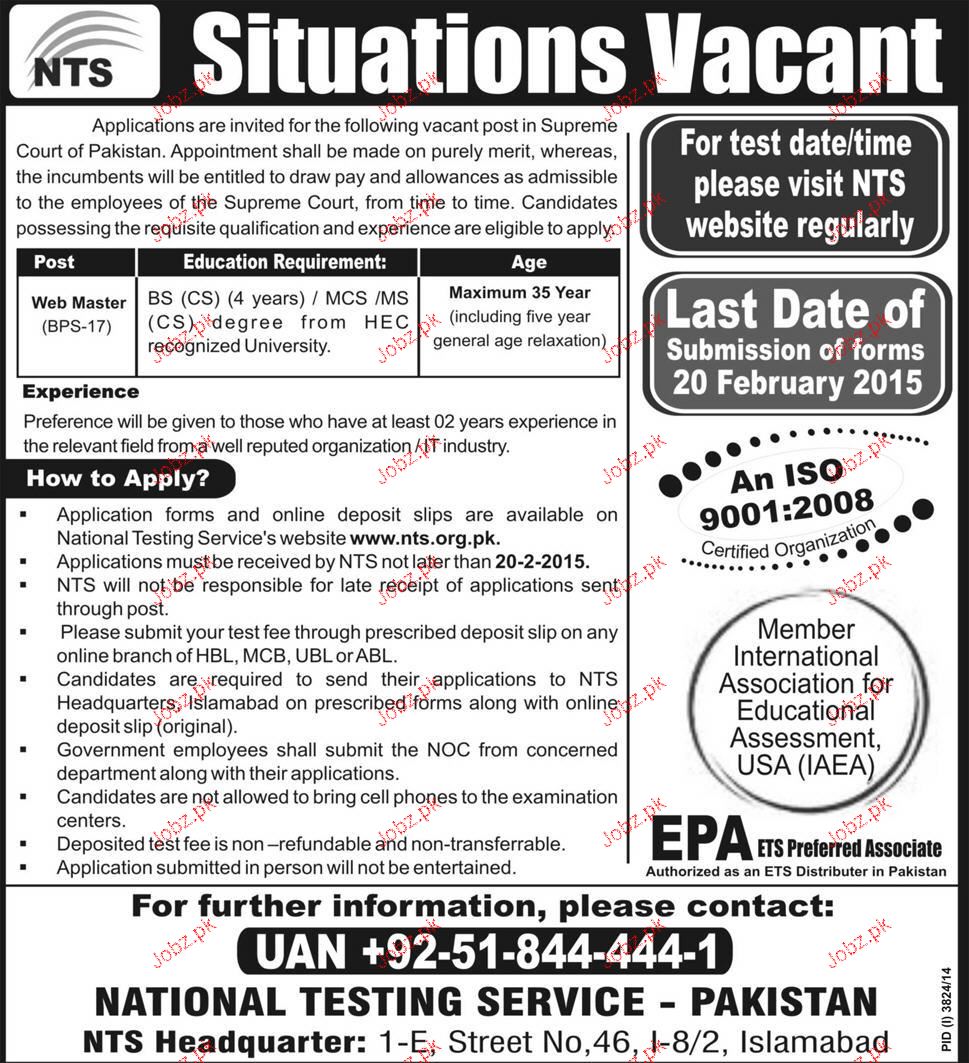 Apply as per details in job advertisement. Login to view further details of how to apply via https://www.jobz.pk online.