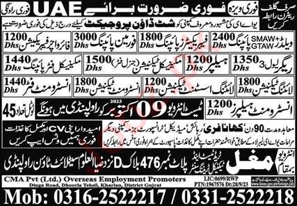 Vacant posts including rigger, assistant technician, instrument technician, fabricator piping, mechanical fitter, welder, mechanical technician, foreman piping and helper are announced in Mughal Trade Test & Technical Training Center Abu Dhabi, dubai UAE as per 8 October 2023 advertisement in daily Express Newspaper. Candidates with Matric, Primary and Middle etc. educational background will be preferred.