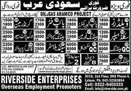 Latest Labor jobs and others Overseas jobs in Riverside Enterprises closing date is around December 14, 2025, see exact from ad. Read complete ad online to know how to apply on latest Riverside Enterprises job opportunities.