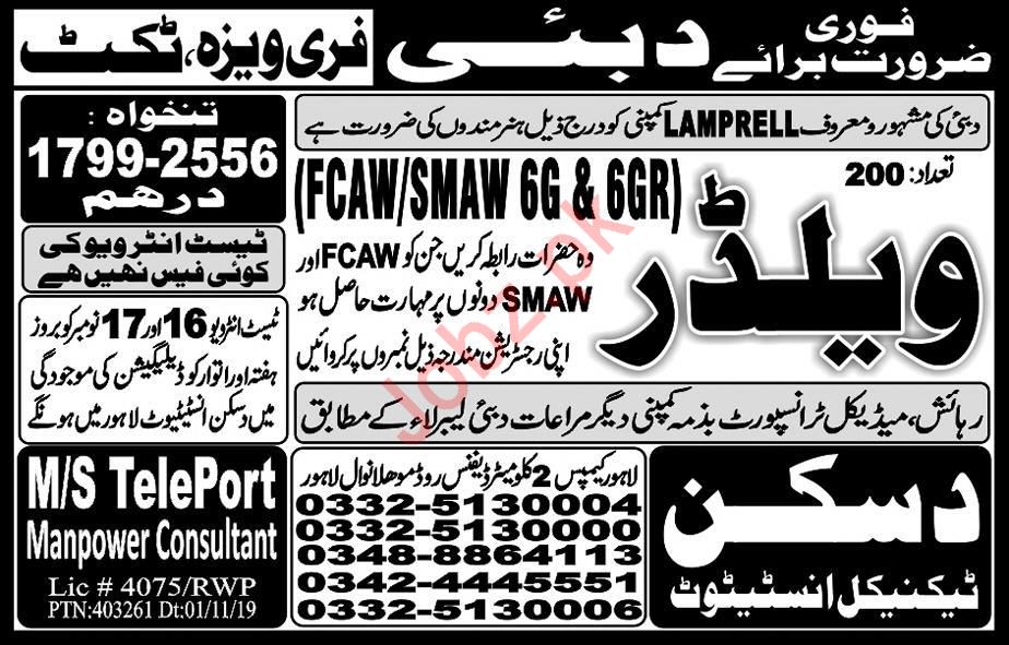 Vacancies in Teleport Manpower Consultants Advertisement November 2019