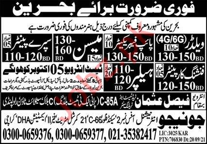 Welder Mason Carpenter Helper Jobs In Bahrain