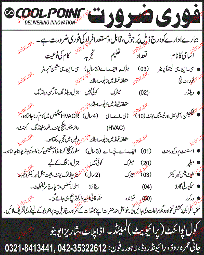 Apply as per details in job advertisement. Login to view further details of how to apply via https://www.jobz.pk online.