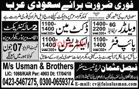 Latest Faisal Usman Overseas Employment Promoters Industrial Posts Saudi Arabia 2025