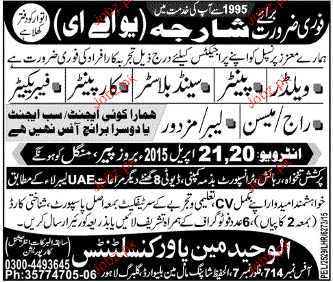 Welders, Painters, Sand Blasters, Carpenters Job Opportunity