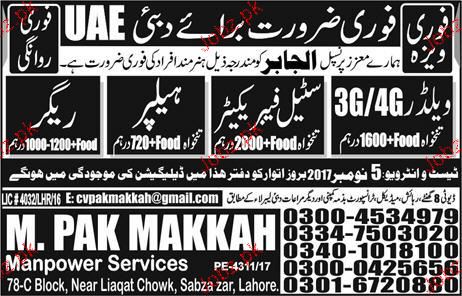 Latest M Pak Makkah Manpower Services Industrial Posts Dubai 2025