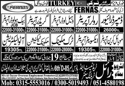 Royal Trade Test & Training Center Ankara, istanbul Turkey invites applications from eligible candidates for the post of auto electrician, driver, truck mechanic, grader operator, wheel loader operator, mechanic technician, mobile crane operator, roller operator, excavator operator, backhoe loader operator and dumper driver as per advertisement of July 16, 2025 published in daily Express Newspaper. Educational qualifications required Matric, Bachelor, Intermediate and DAE etc.