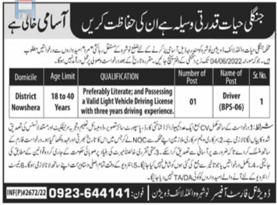 Latest Forest & Wildlife Department Driving Posts Nowshera 2025
