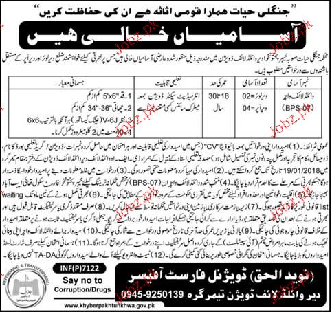Latest Wild Life Protection Department Security Posts Peshawar 2025