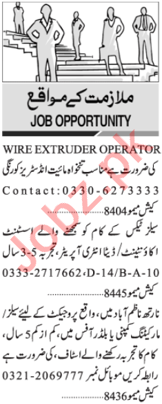 Wire Extruder Operator & Data Entry Operator Jobs 2021