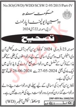 Women Development Department Karachi, karachi Sindh Pakistan invites applications from eligible candidates for the post of chairperson as per advertisement of May 26, 2024 published in daily Jang Newspaper. Persons with Master, Bachelor and MS etc. education can apply.