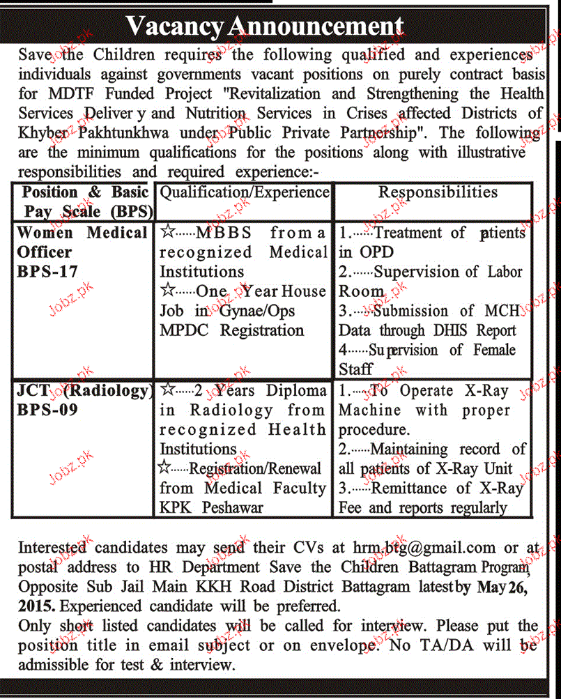 Apply as per details in job advertisement. Login to view further details of how to apply via https://www.jobz.pk online.