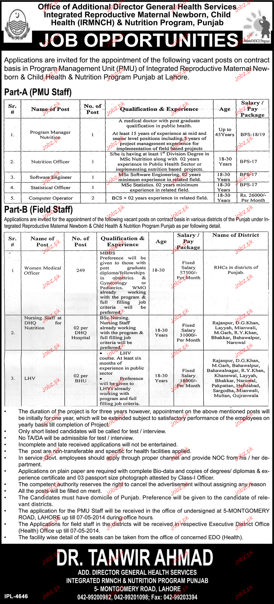 Apply as per details in job advertisement. Login to view further details of how to apply via https://www.jobz.pk online.