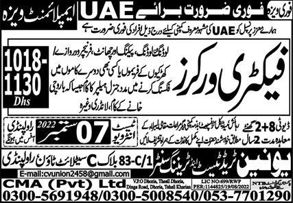 Union Trade Test and Training Center is looking for candidates for following posts as per job advertisement published in daily Express Newspaper of September 6, 2022 for location Abu Dhabi, dubai UAE: