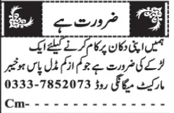 Apply as per details in job advertisement. Login to view further details of how to apply via https://www.jobz.pk online.