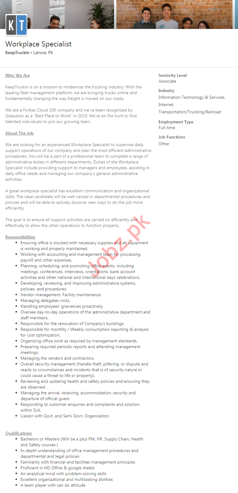 Apply as per details in job advertisement. Login to view further details of how to apply via https://www.jobz.pk online.