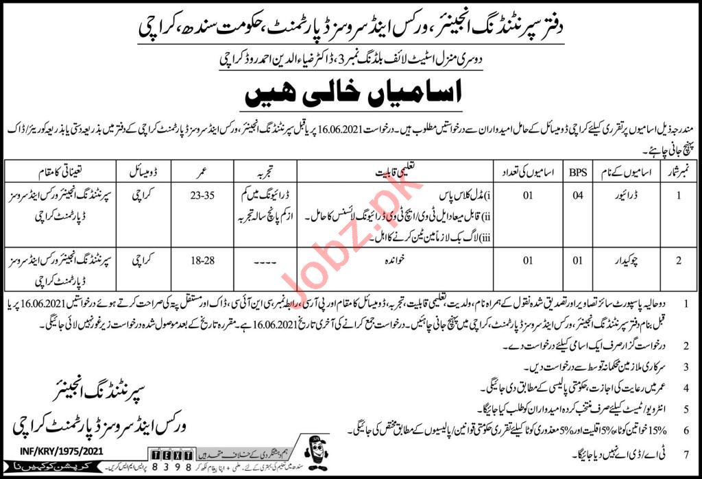 Works & Services Department Karachi Jobs 2021 Chowkidar