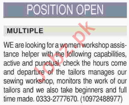 Vacancies in Textile & Clothing Company Advertisement April 2019