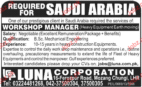 Upcoming Job 2026: Workshop Manager Job Opportunity