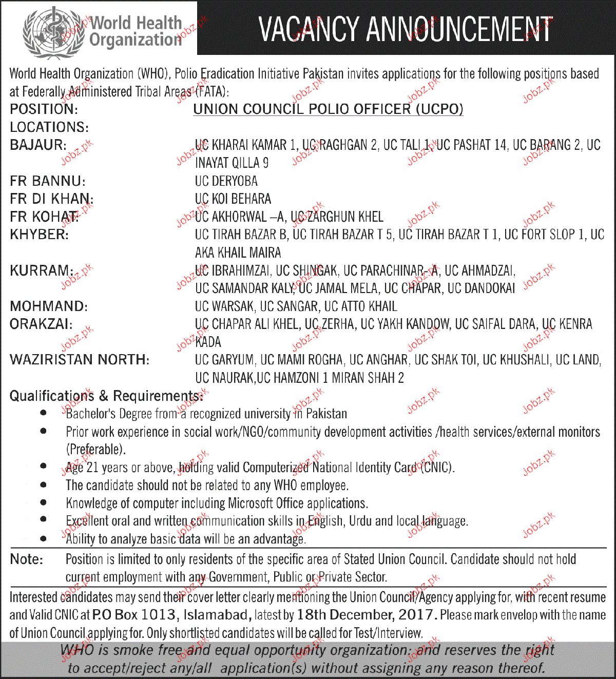 Apply as per details in job advertisement. Login to view further details of how to apply via https://www.jobz.pk online.