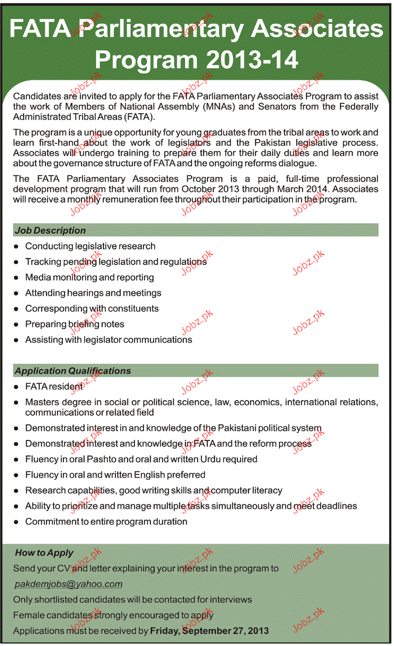 Apply as per details in job advertisement. Login to view further details of how to apply via https://www.jobz.pk online.