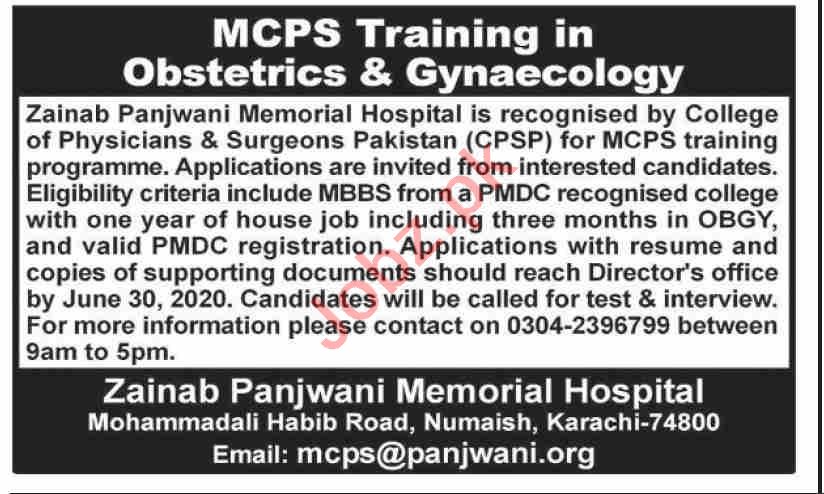 Zainab Panjwani Memorial Hospital Jobs 2020 Gynaecologist